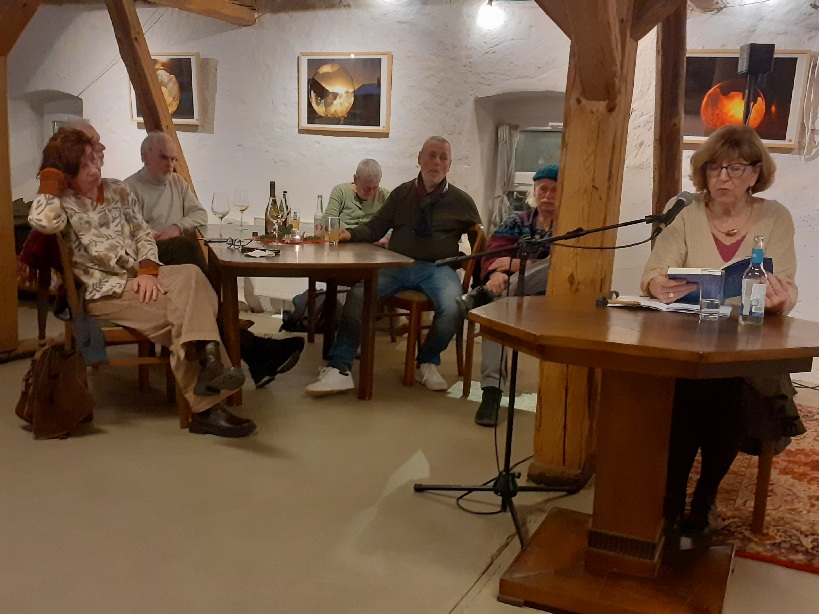 Bei der musikalischen Lesung unseres Vereins wurden die Akteure und alle mehr als 50 Besucherinnen und Besucher reichlich beschenkt. Angela Schmidt-Bernhardt aus Marburg brachte dem Publikum ihren deutsch-polnischen Roman "Der Fassadenkletterer" mit, las daraus vor und ergänzte die Handlung mit Kommentaren. So gelangen auch Einblicke in die deutsch-polnische Geschichte bis zum Posener Aufstand 1956.